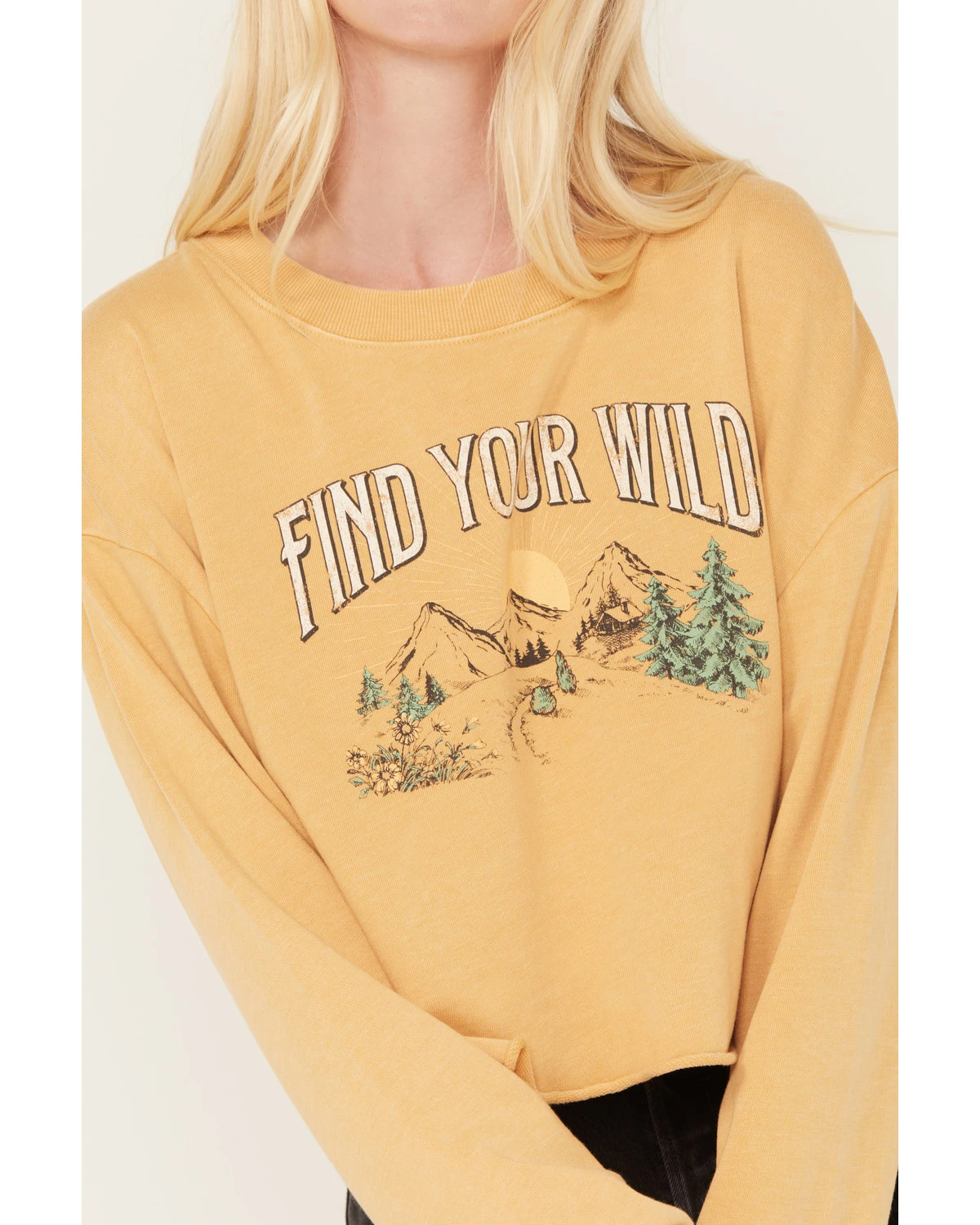 - “Find Your Wild” with mountain scene vintage graphic on front